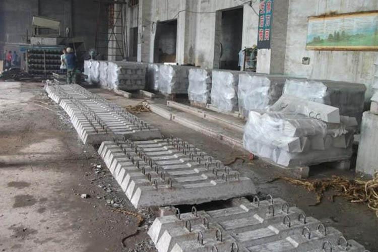 900軌距水泥枕木由水泥,沙子,石子,高強(qiáng)螺紋鋼組成,除了具有不怕水,不怕曬,不怕腐蝕等特點(diǎn)外,還具有穩(wěn)定性強(qiáng),使用壽命強(qiáng),絕緣性好,養(yǎng)護(hù)費(fèi)用低等優(yōu)點(diǎn)。900軌距水泥枕木安裝時(shí)只需要用錘子砸彎即可,安裝使用非常簡便,適合軌道的敷設(shè)。臨時(shí)軌道使用后,鋼筋扣件可以用鎬取直后用去其他線路的敷設(shè),很容易實(shí)現(xiàn)重復(fù)利用。